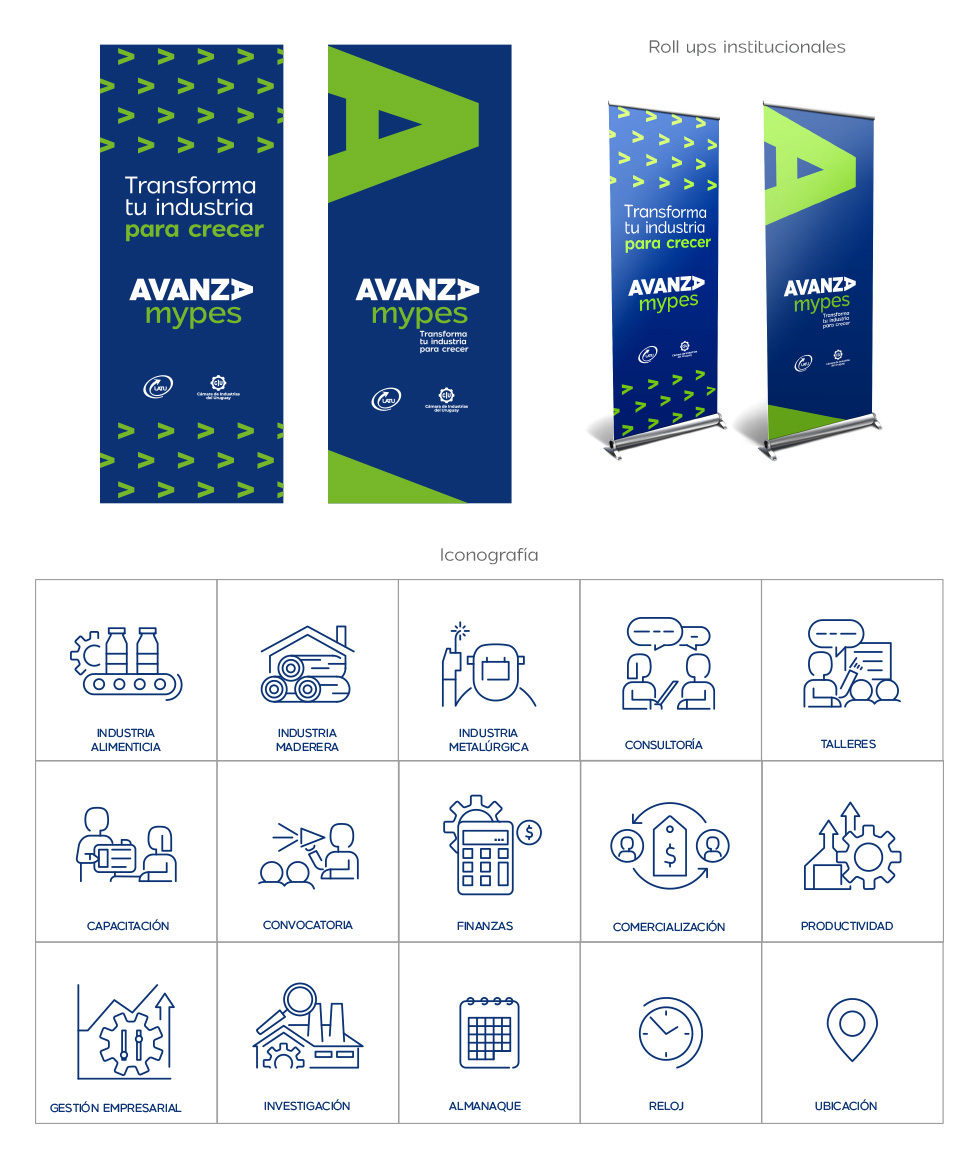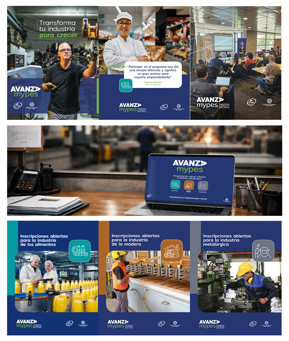 Realizamos el diseño de identidad del programa Avanza Mypes, un programa de apoyo a micro y pequeñas empresas que llevan adelante la Cámara de Insutrias y el Latu