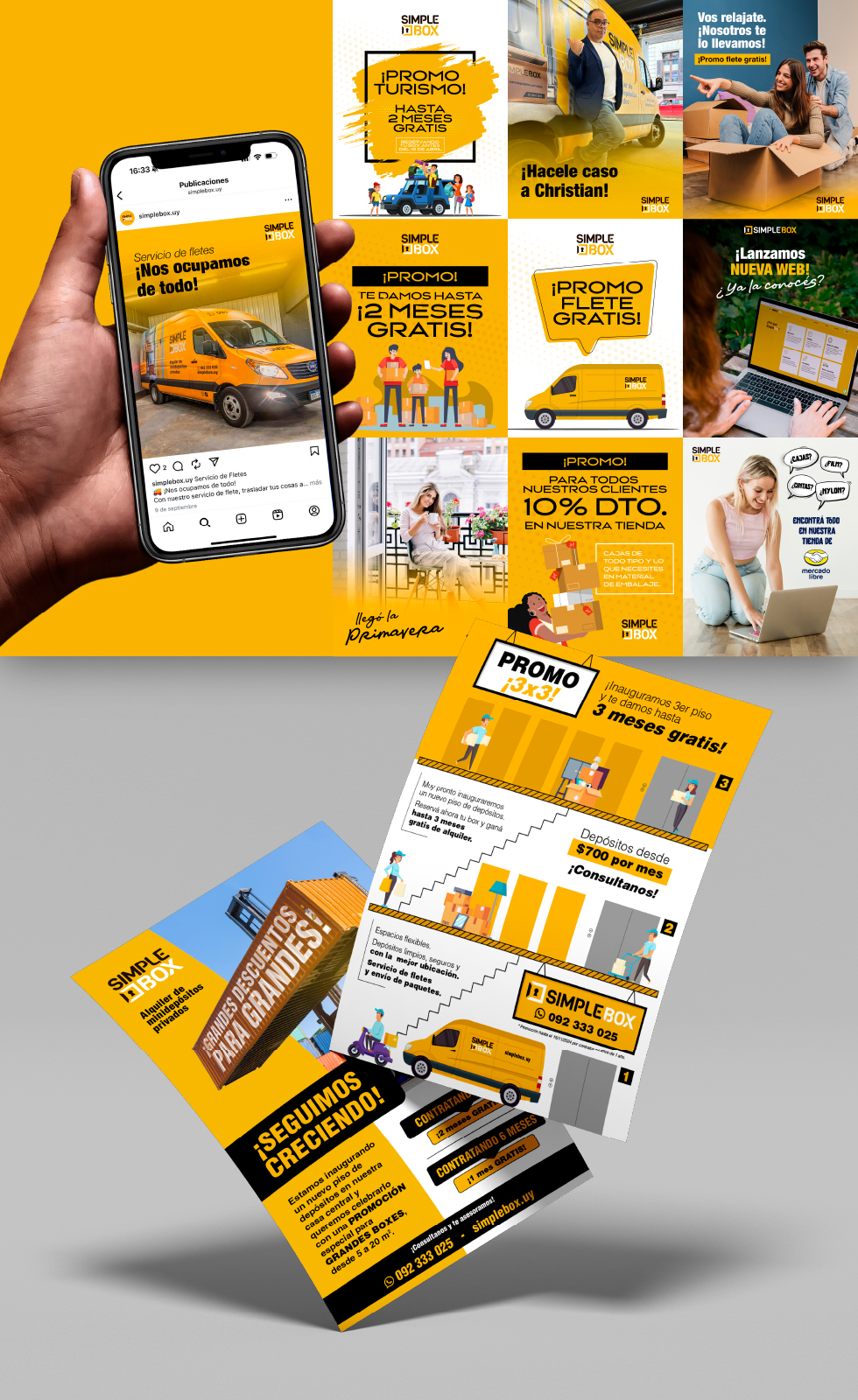 Realizamos la comunicación para SimpleBox uno de las principales empresas y pionera en el rubro de Self Storage en Uruguay. Un rubro que implica una constante actividad de promociones, difusión, información del servicio y su funcionamiento, para apoyar la gestión comercial de la empresa.