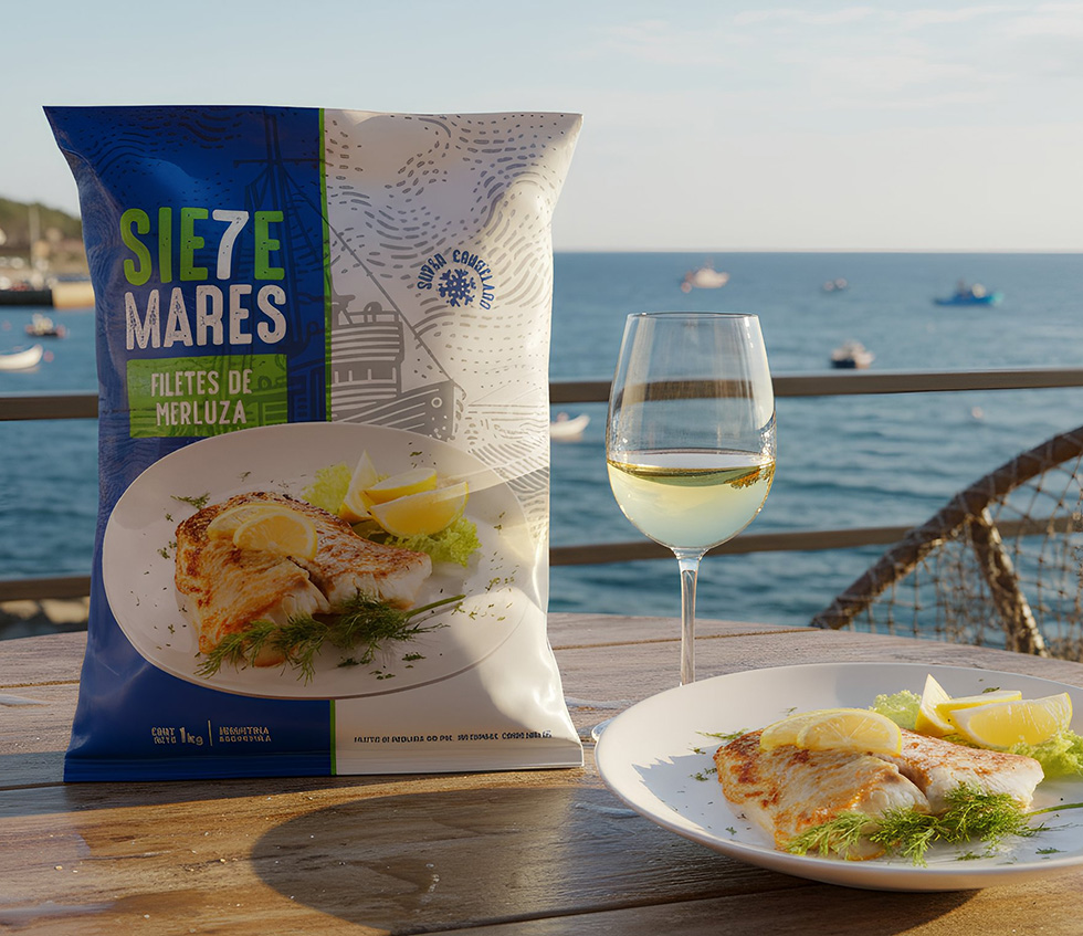 Creamos la marca, su identidad visual y diseño de línea de envases para congelados de productos de mar Siete Mares. Trabajo desarrollado para Ártico en Argentina.