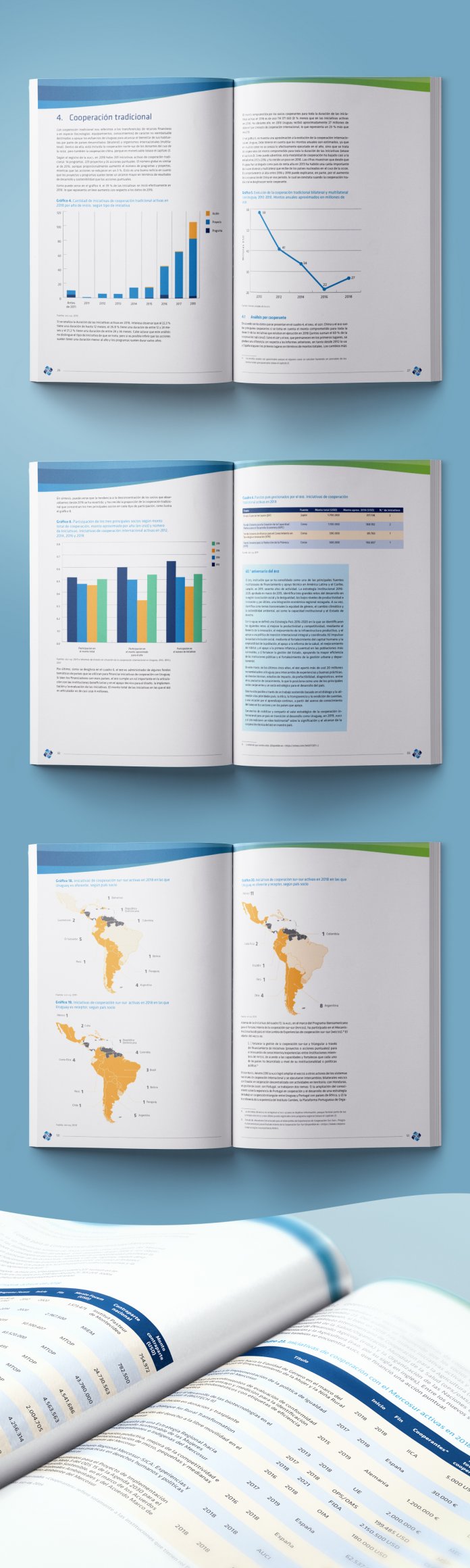 Diseño editorial de memoria anual de AUCI, Agencia Uruguaya de Cooperación Internacional.