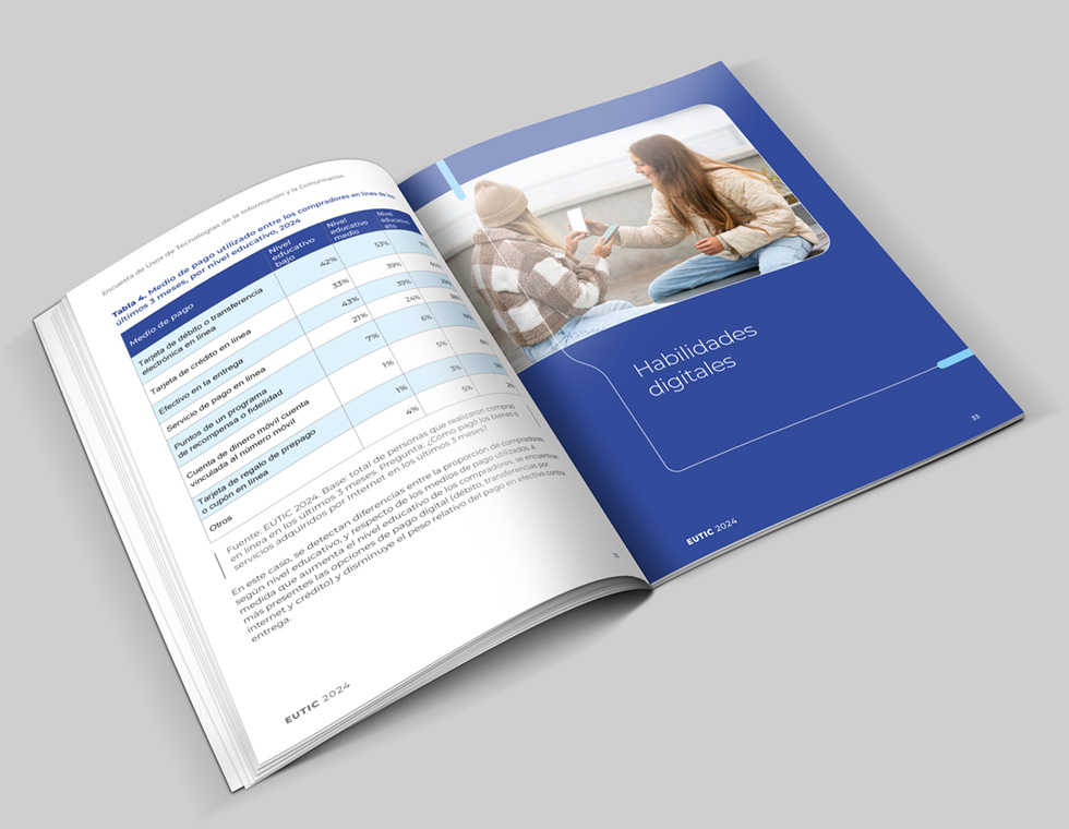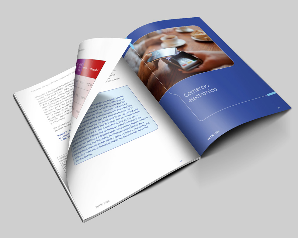 Diseño editorial para Agesic sobre informe EUTIC 2024. Encuesta de usos de tecnología de la información y la Comunicación.