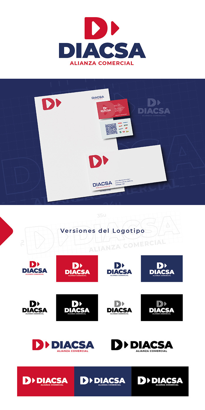 Realizamos la identidad de marca para DIACSA. Empresa que importa y distribuye alimentos para Chile, principalmente en el rubro de chocolates golosinas.